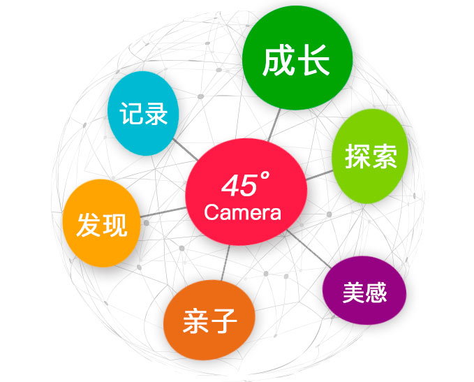 45° Camera那里充满了新奇的事物、有趣的伙伴和刺激的冒险旅程。让大人眼里习以为常的一切,都成了他们欢乐的源泉。通过“45度 ”让孩子自己用照片记录每天的新发现。大人都可以从照片中找回那份被遗忘的童真。